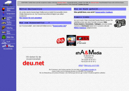 Auf der Homepage standen die Neuerungen sowie Aktionen - ein Prinzip, das wir bis heute beibehalten haben. Die Verbindung Wetter und Webcam-Links gab's auch zuerst bei uns. Und: Wir hatten den ersten Wetter-Newsletter mit der täglichen Vorhersage in Deutschland! Auch das Straßenwetter war vorher im Internet weitgehend unbekannt, ist nun aber auf fast jeder Wetterseite zu finden. Naja, aber wir fanden sogar den Aufbau unseres Feedback-Formulars kurz darauf bei einem Mitbewerber wieder... ;-)