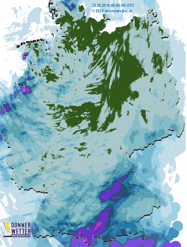 Fast überall in Deutschland gab es leichten Regen. Im Westen und Süden regnete es stärker. Die Mengen reichten über 20 l/m2 an den Alpen. Heute wird es kaum regnen. Die Prognose dazu finden Sie hier.