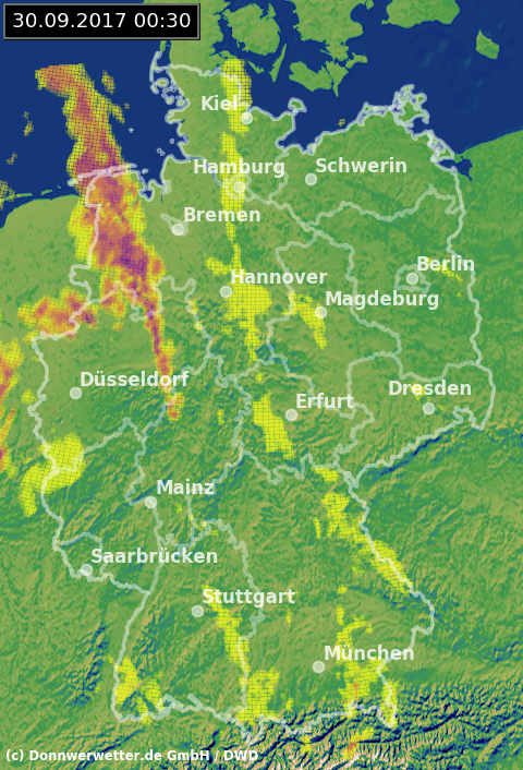 Radarbild von Samstag, 30.09.2017 um 00.30 Uhr