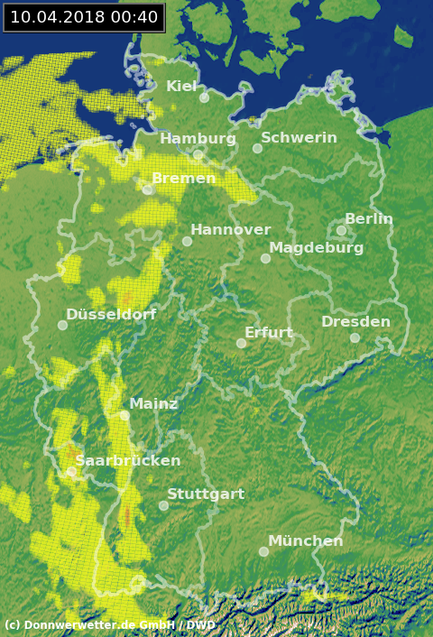 Radarbild von Dienstag, 10.04.2018 um 00.40 Uhr