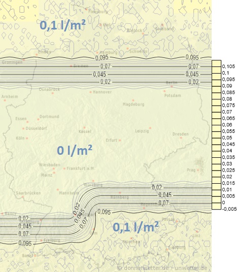 Am Freitag zieht in den Nordwesten eine Front mit etwas Schnee oder Schneeregen herein. Die Mengen liegen jedoch meistens unter 5 Liter pro Quadratmeter.