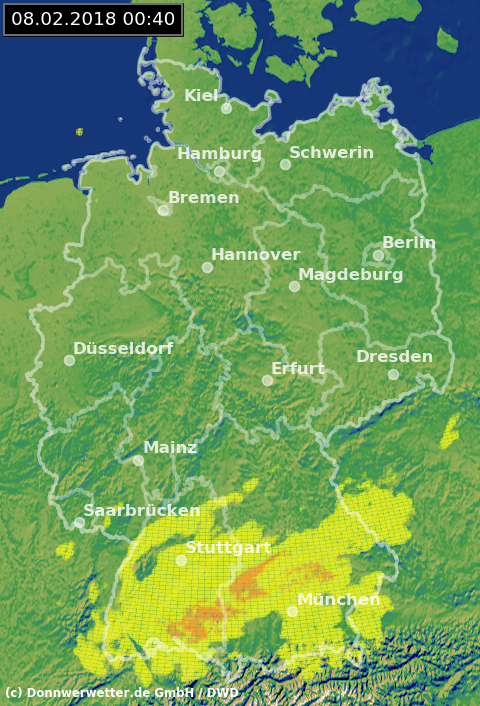 Radarbild von Donnerstag, 08.02.2018 um 00.40 Uhr