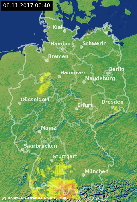 Aktuell im Süden und Südwesten gebietsweise Regen