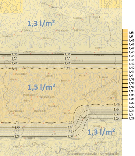 Am Freitag fällt wieder häufiger Niederschlag. In einem Streifen vom südlichen Niedersachsen und NRW, über Nordhessen und Thüringen bis nach Sachsen fällt zum Teil kräftiger Schnee mit erheblichen Verkehrsbehinderungen, südlich davon bleibt es meistens noch bei Regen. Die Mengen liegen zwischen 5 und 20 Liter pro Quadratmeter. Im Norden bleibt es überwiegend trocken. Auch im Süden sind die Mengen eher gering.