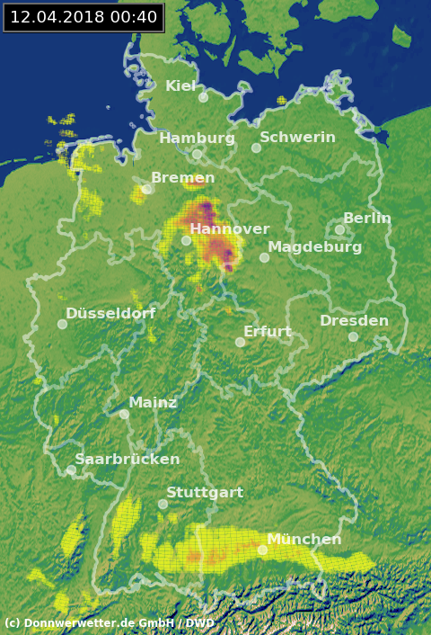 Das Radarbild zeigt aktuell noch ein Schauer- und Gewitterklecks über Niedersachsen und leichte Signale im Süden. Regen fällt hier jedoch nicht. Sonst präsentiert sich der Himmel über Deutschland teils bewölkt, teils aufgeklart.