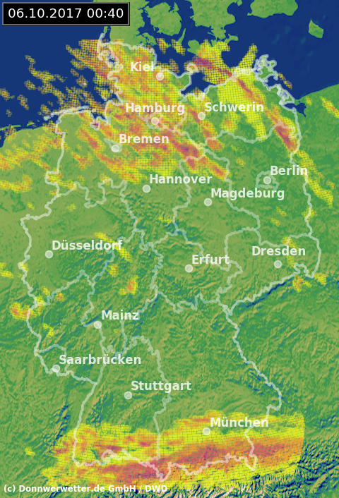 Radarbild von Freitag, 06.10.2017 um 00.40 Uhr
