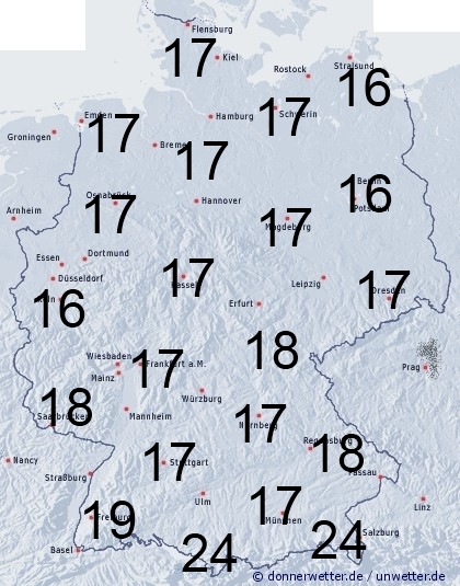 In Deutschland kommt es immer wieder zu Niederschlägen, die teils als Regen, teils als Schnee oder Schneeregen fallen. Die Benetzungsdauer liegt dabei allgemein zwischen 16 und 19 Stunden. Bei einer vorhandenen Schneedecke werden bis zu 24 Stunden erreicht.