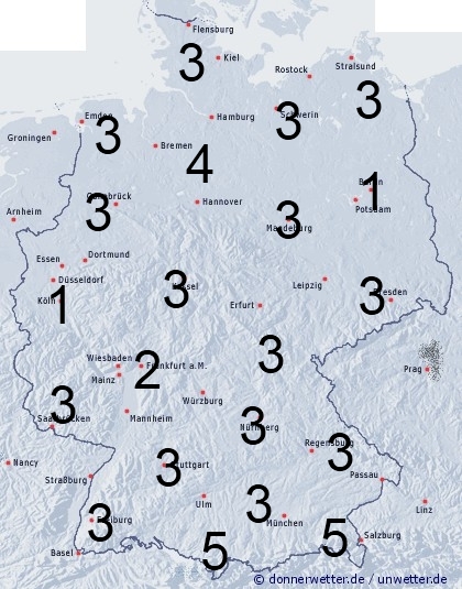In Deutschland herrscht freundliches Spätsommerwetter. Benetzung zwischen 1 und 5 Stunden entsteht nur durch nächtliche Strahlungstaubildung. Die Benetzungsdauer ist außerhalb von Ortschaften, insbesondere in windgeschützten Tälern, sowie an Gewässern noch höher einzuschätzen.