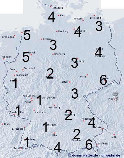 Abgesehen vom Südwesten muss gelegentlich mit Regen oder Schauern gerechnet werden. Die Benetzungsdauer liegt dabei in größeren Gebieten unseres Landes zwischen 2 und 6 Stunden. Im Südwesten entsteht leichte Benetzung nur durch nächtlichen Strahlungstau.