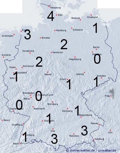 Die Benetzungsdauer liegt bei einer noch vorhandenen Schneedecke in den Bergen bei 24 Stunden. Sonst werden meist nur 0 bis 2 Stunden erreicht. Im Süden kann durch nächtliche Tau- und Reifbildung allerdings gebietsweise ein höherer Wert auftreten. Im Nordwesten und Norden sorgt etwas Regen für eine Benetzung von 2 bis 4 Stunden.