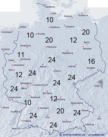Die Benetzungsdauer liegt in den Gebieten mit einer vorhandenen Schneedecke bei 24 Stunden. Im meist schneefreien Nordwesten, sowie am Oberrhein werden weniger als zwölf Stunden erreicht.