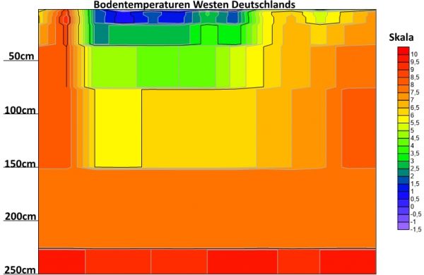 Bodentemperaturen rund um Deutschland