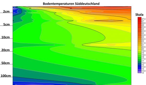 Bodentemperatruen vom 02.08.2016 bis zum 09.08.2016, für das Mittelgebirge.