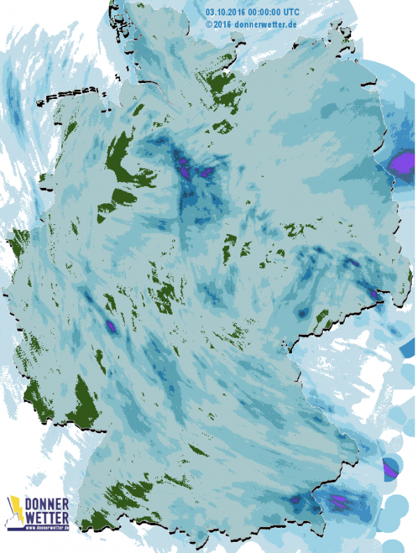 Im ganzen Land gab es Schauer. An nur wenigen Stellen blieben die Regenmengen unter 0,1 l/m2. Meist gab es 1 bis 5 l/m2 an Regen. Heute allerdings zieht der Regen an Erzgebirge und Alpen ab und es trocknet ab.