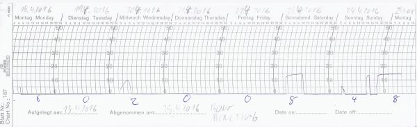 Selbst in den milden Niederungen lagen die Lufttemperaturen am Montagmorgen, wie auch unser Temperaturschrieb zeigt, nur um den Gefrierpunkt.