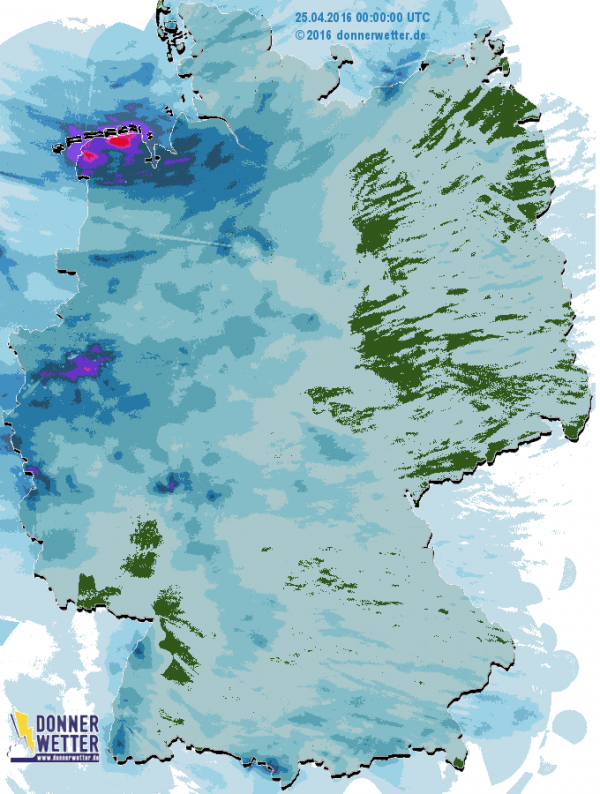 Der Tiefdruckwirbel über der Nordsee hat kräftig Regen und Schnee hinterlassen. In den Mittelgebirgen sind bis zu 20 cm Schnee gefallen. Insgesamt betrug die Regenmenge an der Nordseeküste bei den Ostfriesen und im Münsterland bis zu 40, teilweise 50 l auf dem qm. Nur in Ostdeutschland war es etwas trockener.