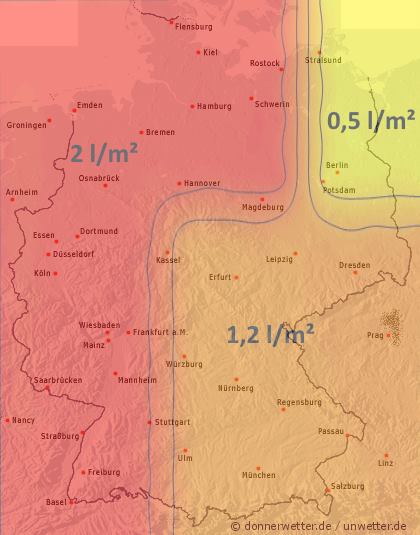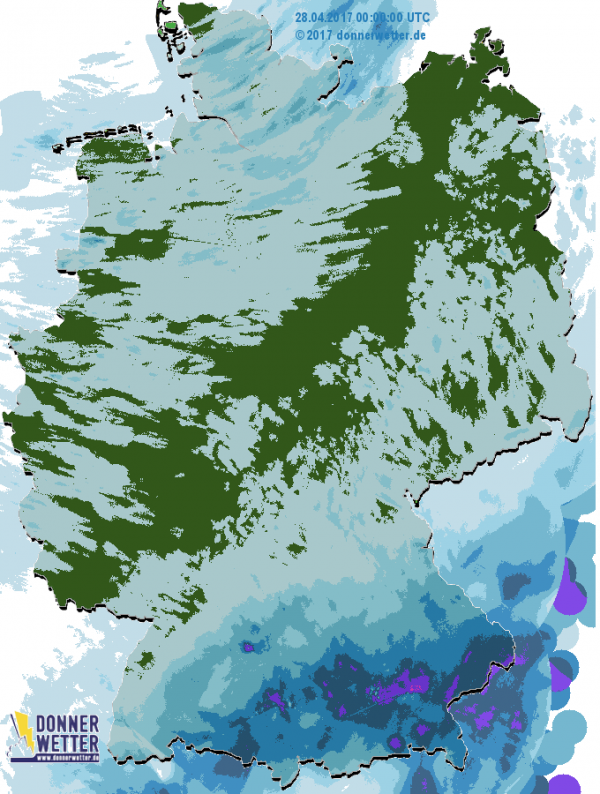 Heute tagsüber fällt nur im Nordosten und im Berchtesgadener Land noch etwas Niederschlag, oder einige Schauer. Die Mengen liegen dabei zwischen 1 und 5 Liter / m².