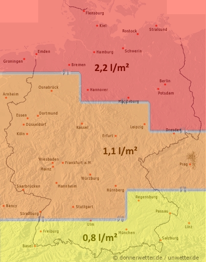 Gestern gab es nur an der Nordsee wenig Regen, sonst war es trocken. Heute nähert sich von Westen her ein Wolkenband mit vielen Schauer und Gewittern. Es wird besonders zum Nachmittag von Westen her ziemlich nass. Trocken bleibt es zunächst in Ostdeutschland und im Bayerischen Wald.