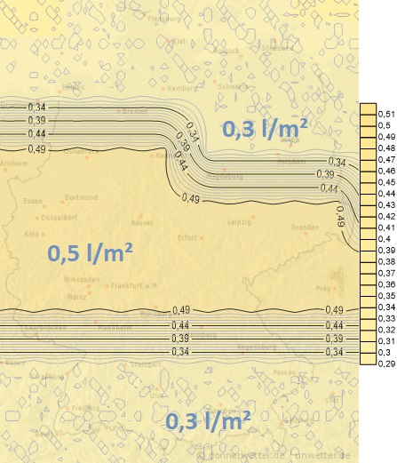 Heute und morgen geht es ziemlich unbeständig weiter. Häufig fällt Niederschlag, im Norden häufig als Schnee, sonst vorübergehend bis ins Bergland als Regen. Die Mengen erreichen an beiden Tagen zwischen 5 und 20 Liter pro Quadratmeter, regional auch deutlich mehr, örtlich kann es blitzen und donnern. Bäche und kleinere Flüssen schwellen vor allem im Südwesten wieder an. Vor allem in einem Streifen über die Landesmitte drohen Sturmböen.