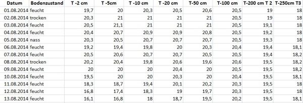 Die (Boden-)Temperaturen sind derzeit im Abwärtstrend (siehe Tabelle unten), die regionalen Schauer tragen ihr Übriges bei - vielen Landwirten wird also auch in den kommenden Tagen der Zugang auf Ihr Feld erschwert. Also nicht mit schweren Maschinen drauf...