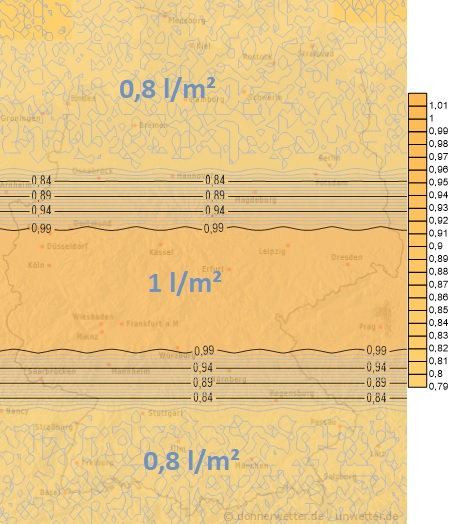 Heute überquert uns ein weiteres Regengebiet. Dabei können gebietsweise zwischen 10 und 20 Liter Niederschlag pro Quadratmeter fallen.