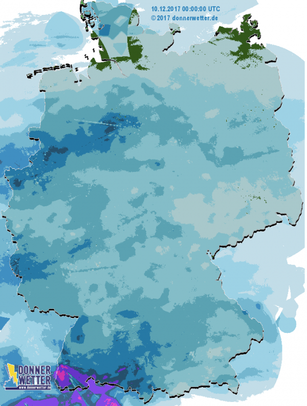 Heute zieht erneut ein intensives Niederschlagsgebiet von Südwesten über Deutschland hinweg. Im Nordwesten und Norden kann es schneien und es muss mit erhöhter Glätte gerechnet werden, sonst fällt meistens Regen. Im Südwesten können teilweise über 20 Liter pro Quadratmeter fallen. In Verbindung mit der Schneeschmelze in den Bergen können Bäche und kleinere Flüsse deutlich anschwellen.