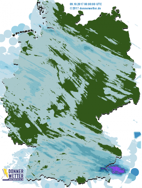 Das Radarbild zeigt aktuell vor allem im Norden und in der Mitte ausgedehntere Niederschlagssignale. Sonst ist der Himmel über Deutschland nur ganz im Nordosten, sowie im Südwesten teils aufgeklart, im übrigen Bereich meistens wolkenverhangen. Stellenweise haben sich Nebelfelder gebildet.