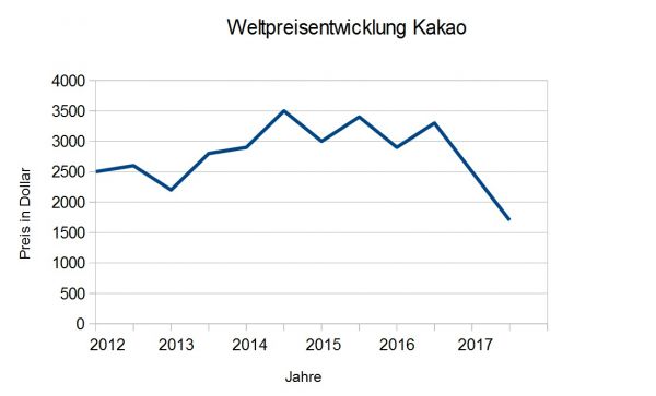 Auch die Kakaopflanzen reagieren sensibel auf klimatische Veränderungen. Außerdem müssen Fermetation, Ernte und Trocknung mit Sorgfalt durchgeführt werden. Ein weiterer Faktor zur Preisbildung sind zum Beispiel die 2008 gestiegenen Exportkosten durch die Veränderungen der Energiepreise. Größter Exporteur sind afrikanische Länder, während Importeure die Industrieländer in Europa und den USA sind.