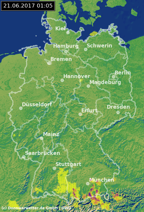 Radarbild von Mittwoch, 21.06.2017 um 01.05 Uhr