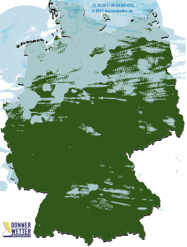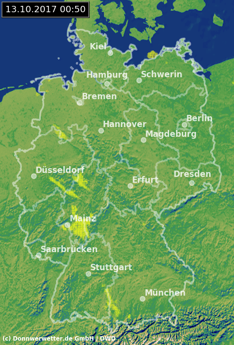 Das Radarbild zeigt aktuell keine signifikanten Niederschlagssignale. Der Himmel über Deutschland ist teils bewölkt, teils sternenklar.