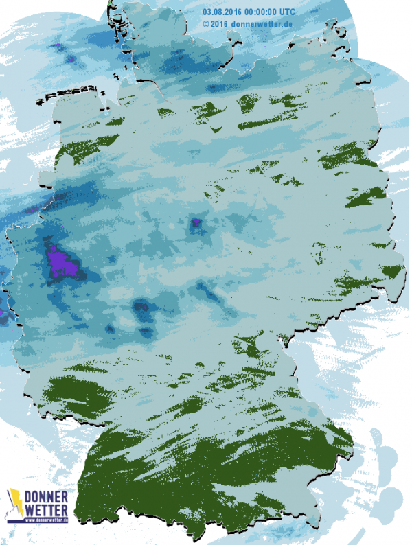 Die Tagesniederschlagsmengen vom 03.08.2016
