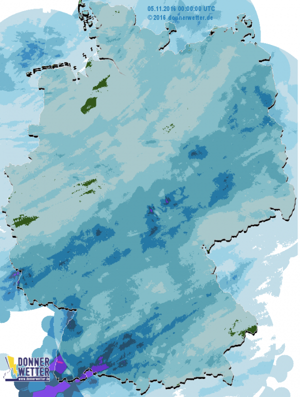 Ganz Deutschland wurde durch das Tief "Husch" nass. Die größten Regenmengen fielen und fallen im Süden von Deutschland am Alpenrand und im Schwarzwald mit 30 bis 35 l/m2 an Regenmengen in 24 Stunden. Jetzt wird es in ganz Deutschland kühl.