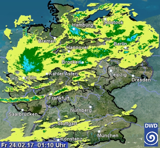 Radarbild vom Freitag, 24.02.2017 um 01.10 Uhr