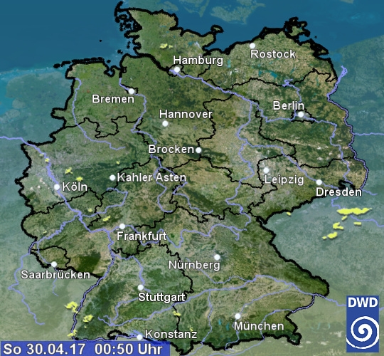 Das Radarbild zeigt aktuell keine Niederschlagssignale. Der Himmel über Deutschland ist größtenteils wolkenlos oder klar.