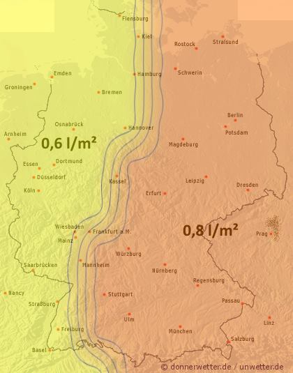 Im Norden und Westen ist es meistens trocken. Die Regenmengen lagen besonders am Alpenrand bei über 10-20 l/m2.