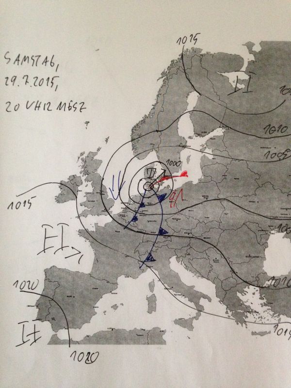 Unsere Wetterkarte mit dem Tief über am Samstagabend um 20 Uhr über Norddeutschland: