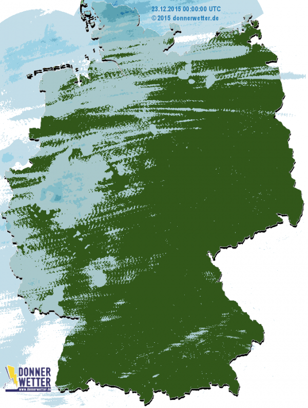 Zum Abend gibt es im Westen und Nordwesten zur Bescherung Regen. Später zieht das Regenband nach Osten weiter.