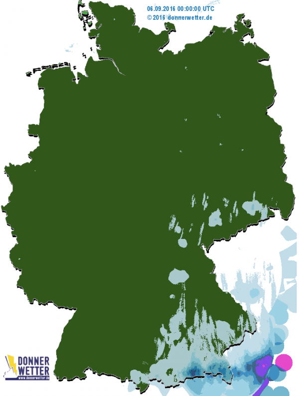 Lediglich zwischen Sachsen und dem südlichen Bayern regnete es in der Nacht zu Dienstag noch vereinzelt. An den Alpen klangen die Schauer erst gegen Mittag ab, das Berchtesgadener Land wurde auch im Verlauf des Nachmittags noch von einigen Regenfällen gestreift. Dabei fielen lokal um die 15 Liter Regen pro Quadratmeter.