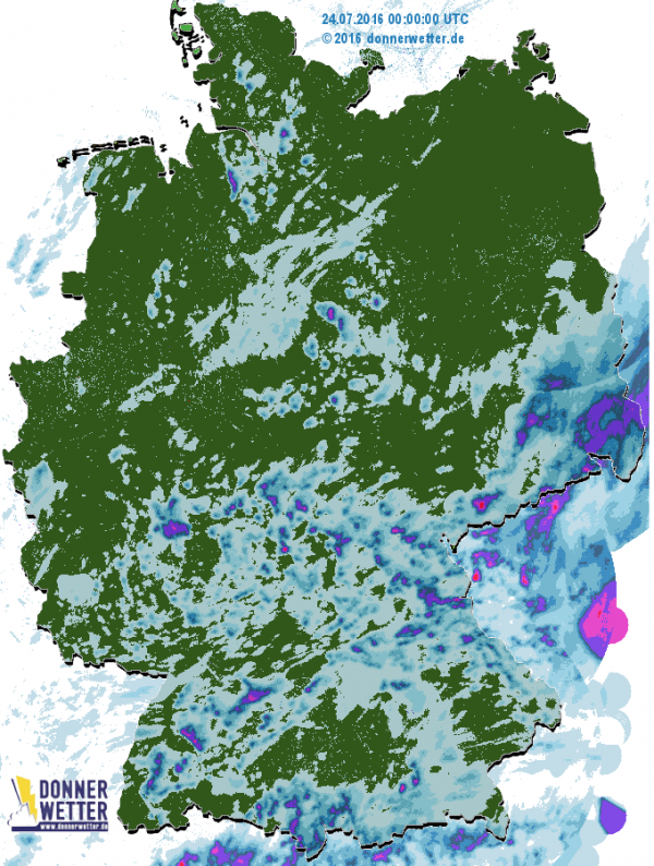 Bis zum Abend klangen die meisten Schauer dann ab und es kam hauptsächlich nur noch entlang der Alpen zu weiteren Regenfällen. In vielen Regionen des Landes, wie beispielsweise im Nordosten oder im Ems- und Rheinland, blieb es hingegen durchweg trocken.