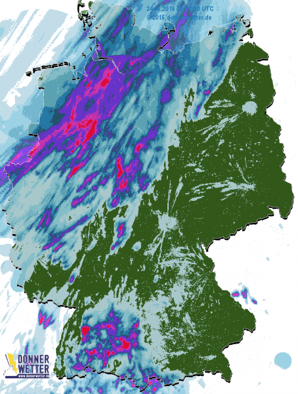 Im weiteren Tagesverlauf konzentrierten sich die Schauer und Gewitter dann zunehmend auf den Raum Hannover/Göttingen und auf die Schwäbische Alb. Auch hier kamen in kurzer Zeit große Regenmengen "herunter".