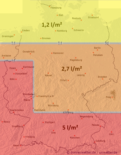 Diese zogen vom Alpenrand Richtung Norden und erreichten in der Nacht auch die Mitte Deutschlands. Dabei kam es in weiten Teilen Bayerns und Baden-Württembergs zu heftigen Gewittern mit Starkregen und infolge dessen auch zu Überschwemmungen. In vielen Regionen vom Alpenrand bis an den Main kamen in wenigen Stunden mehr als 50 Millimeter Niederschlag pro Quadratmeter zusammen.