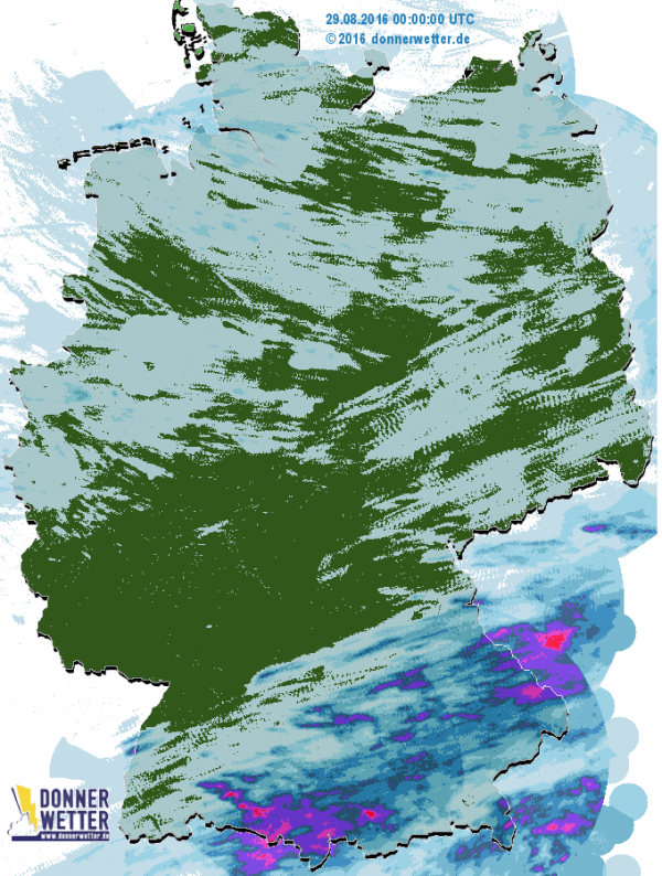 Südlich dieser Linie fielen jedoch vor allem entlang der Alpen lokal bis zu 50 Liter Regen pro Quadratmeter. Bereits ab den frühen Morgenstunden regnete es zwischen Schwarzwald und Alpen mitunter kräftig. Erst am späten Nachmittag ließen die Regenfälle dann nach, in den Alpen regnete es auch noch die erste Nachthälfte durch.