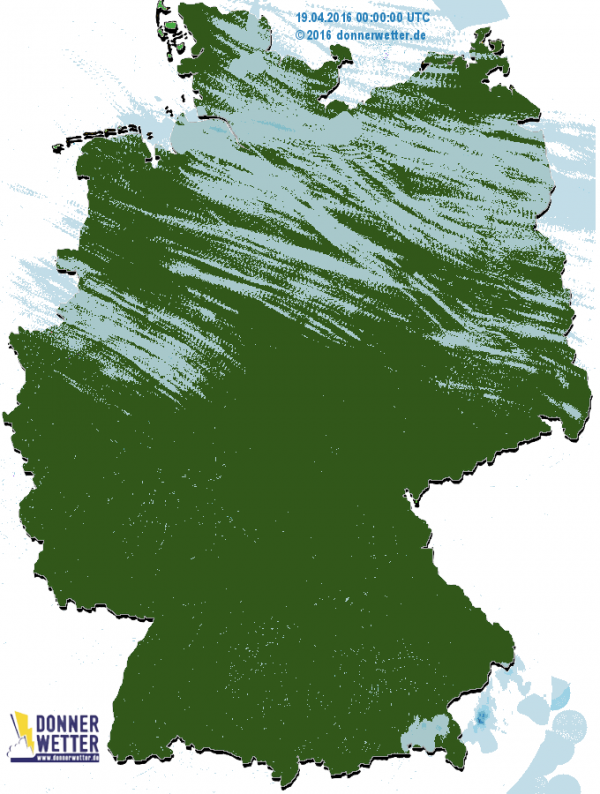 EIn tolles Bild zeigt sich im Regenradar von gestern. Schauerspuren verdichten sich zu einem Muster über Norddeutschland. Sonst war es trocken.