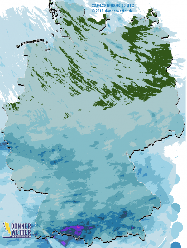 Ein ähnliches Bild wird sich heute zeigen, denn der Regen/Schnee zieht im Süden ab und Schauer ziehen auf. Mit Glück schneit und graupel es nur wenig.