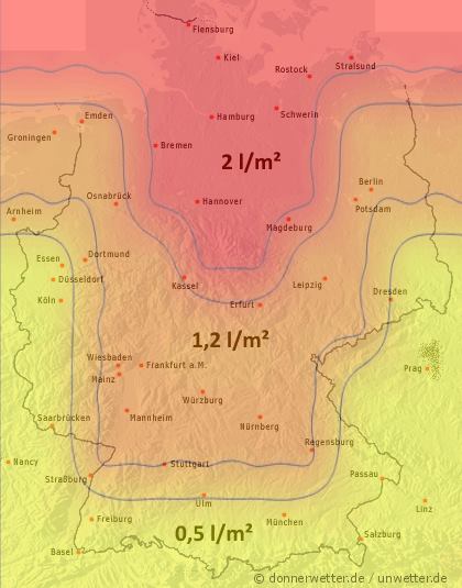 Gegen Mittag erreichte dann eine weitere Front das Land und zog bis zum Abend ostwärts über die Bundesrepublik hinweg. Dabei kam es zwischen Uckermark und Niederrhein mancherorts zu leichten Schauern. Die höchste Schauerdichte wurde jedoch in Schleswig-Holstein und Mecklenburg-Vorpommern erreicht. Lokal fielen im Tagesverlauf bis zu 10 Liter Regen pro Quadratmeter.
