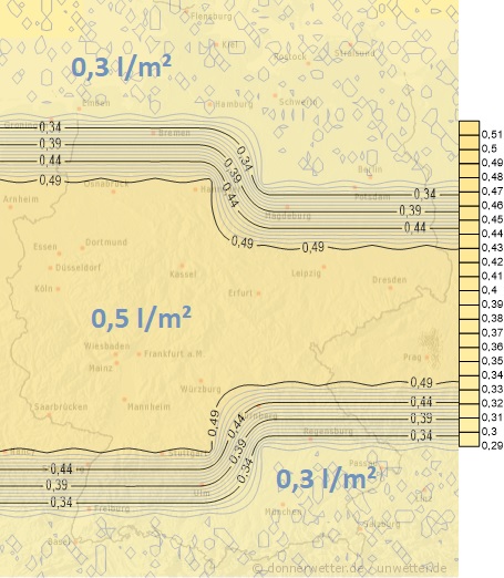 Bis Montag fällt noch gelegentlich Niederschlag, oder es treten Schauer auf. Bei weiter leicht zurückgehenden Temperaturen gehen diese bis Sonntag wohl auch in tieferen Lagen in Schnee über. Regional sollte sich eine Schneedecke bilden können. Die täglichen Niederschlagsmengen liegen dabei meistens so zwischen 1 und 10 Liter pro Quadratmeter, stellenweise bleibt es aber auch nahezu trocken.
