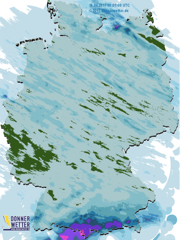 Radarbild von Ostermontag, 17.04.2017 um 00.35 Uhr