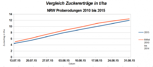 Wie bereits Anfang September schon berichtet, liegt auch aktuell der Zuckertrag leicht unter dem 5-Jahres-Mittel.