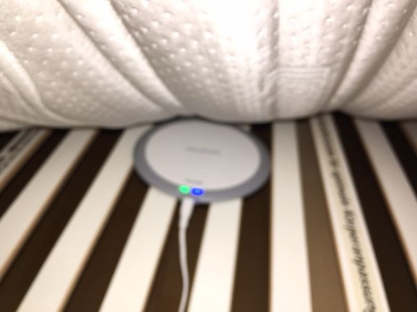 Zunächst zum Äußeren: Die im Radius 17 cm und in der Höhe 1 cm große Scheibe wiegt inkl. Netzteil 234 Gramm und lässt sich bequem unter der Matratze verstauen. Ein Akkubetrieb ist nicht möglich, das Vorhandensein einer Steckdose in Bettnähe also Pflicht.