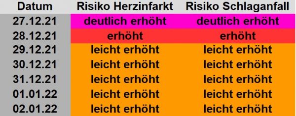 Die Schlaganfall- und Herzinfarktrisiken bis zum 02.01.2022